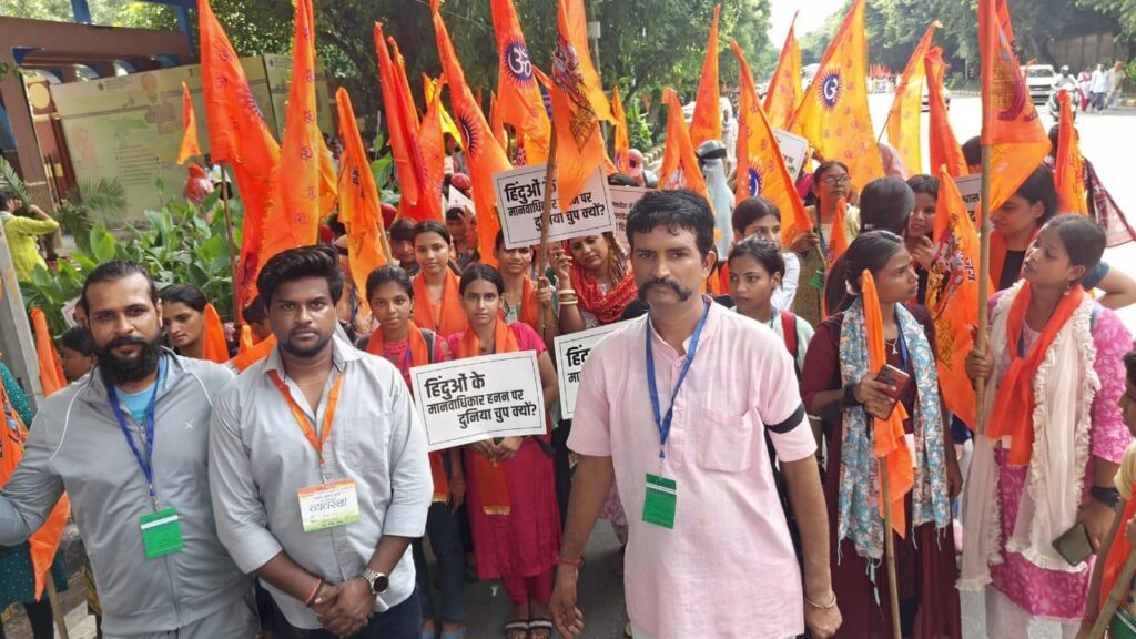 The Nari Shakti Foundation organized a powerful and peaceful protest march titled Nari Shakti March in New Delhi. The march was held in strong condemnation of the ongoing violence, sexual assaults, kidnappings, and systemic oppression against Hindu women in Bangladesh, and to raise awareness about the targeted persecution of Hindus in the region.