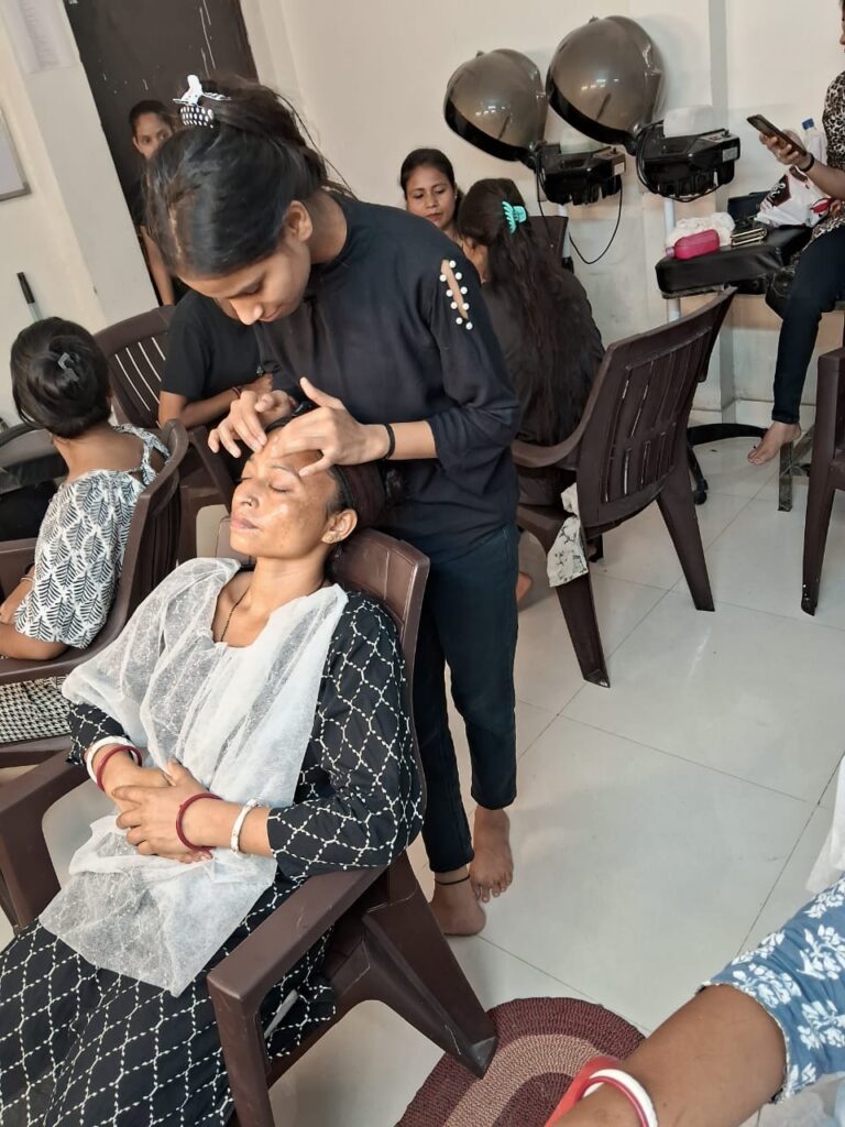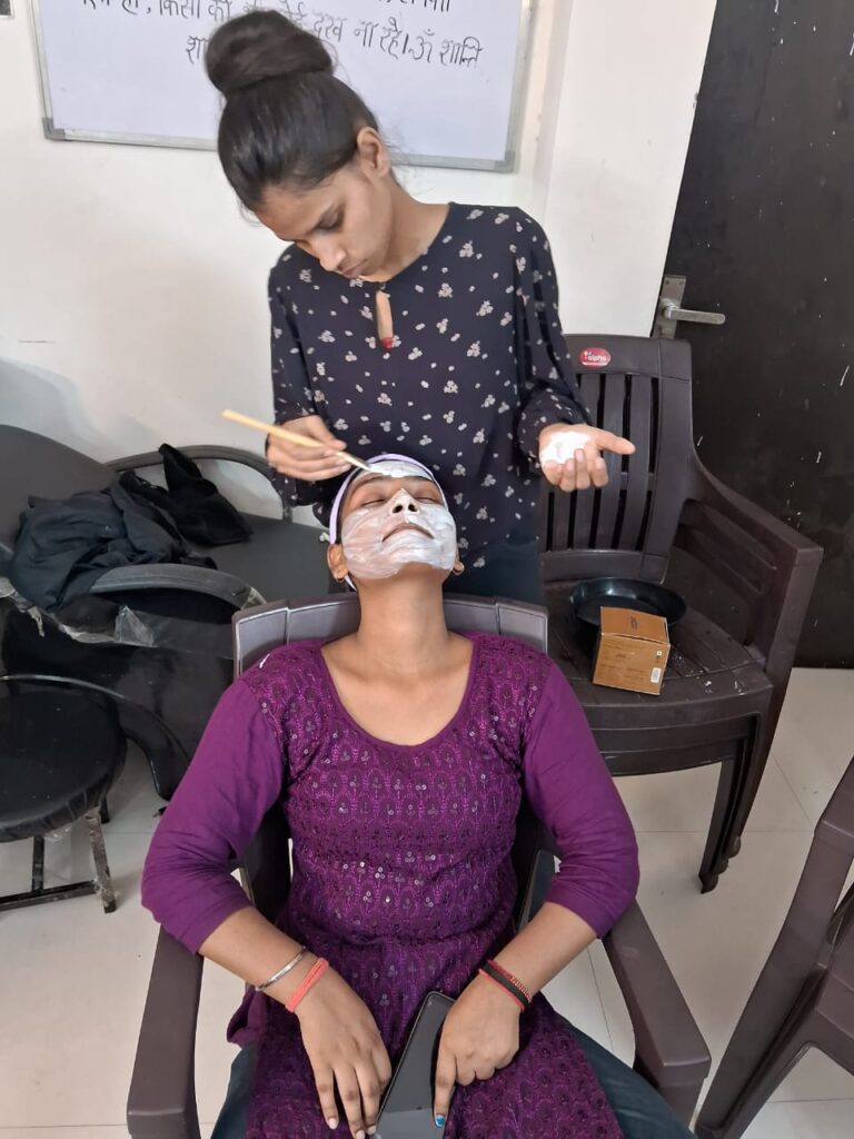 A two-day beautician camp was organized by Samarth Bharat at its INA Center. A total of 29 women from nearby areas participated in the camp, which not only provided them with practical beauty care services but also generated a collection of ₹4110/-.